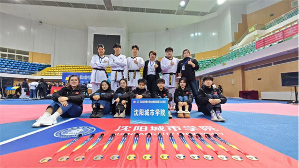 沈阳城市学院跆拳道代表队由井婧梓老师带队,高水平运动员杜樱冉、林飞彤、李佳璇、刘威等12名同学参加比赛。